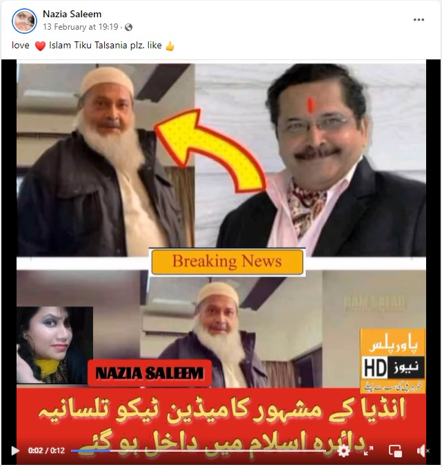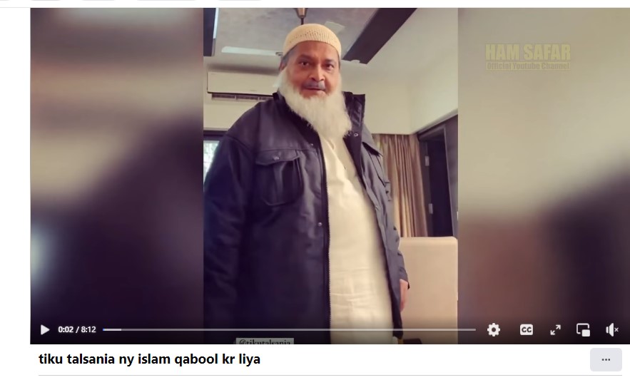 A video of comedian Tiku Talsania wearing a skullcap, white ‘kurta-pajama’ and sporting long white beard has gone viral on social media platforms making the users believe that the veteran actor has converted to Islam. Several social media users have shared video and stills with the claim that the Bollywood actor has ‘accepted Islam.’ However, Newschecker has found out that the viral claim is false.