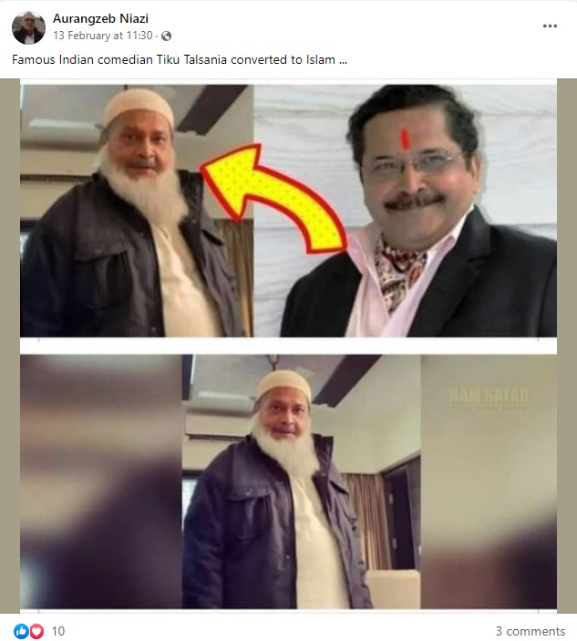 The viral claim that actor Tiku Talsania has converted to Islam is untrue. Talsania had donned the viral look for his character in a serial.