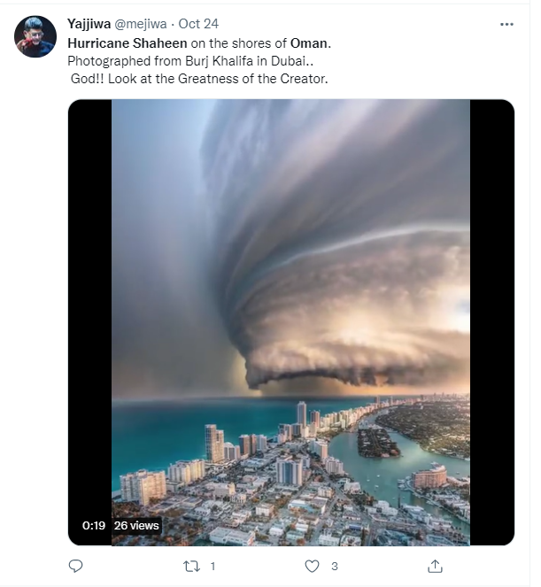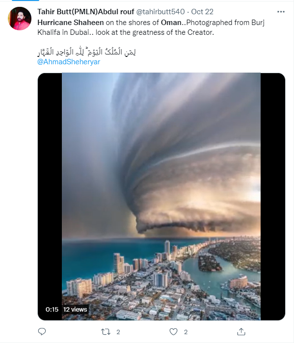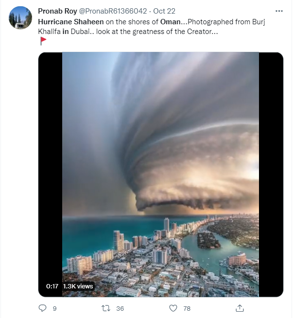 Afridi’s tweet shows that the video is not a recent one and hence is not related to cyclone Shaheen.