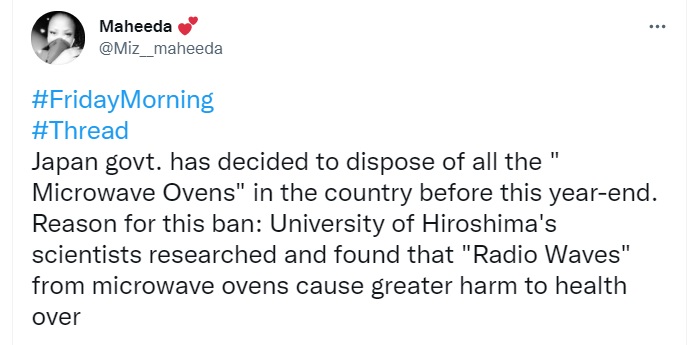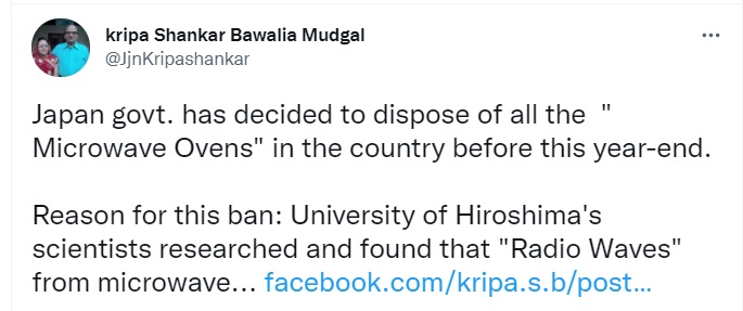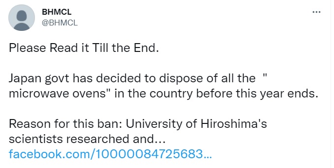 The viral WhatsApp forward claiming that Japanese people were soon ending the use of microwave is an old hoax that has resurfaced and is not true.