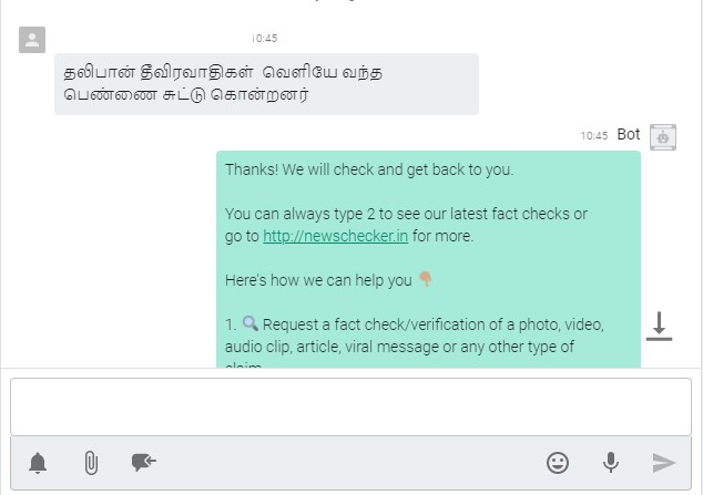 ஆப்கானிஸ்தான் முழுமையாக தாலிபன் வசம் வந்ததிலிருந்து இதுக்குறித்த செய்திகளே ஊடகங்களில் நிரம்பி காணப்படுகின்றது. இந்நிலையில் நம் பயனர் ஒருவர் நியூஸ்செக்கரின் ஹெல்ப்லைன் எண்ணான 9999499044 என்கிற எண்ணில் வீடியோ ஒன்றை பகிர்ந்து அவ்வீடியோவின் உண்மைத்தன்மை குறித்து கேட்டிருந்தார்.