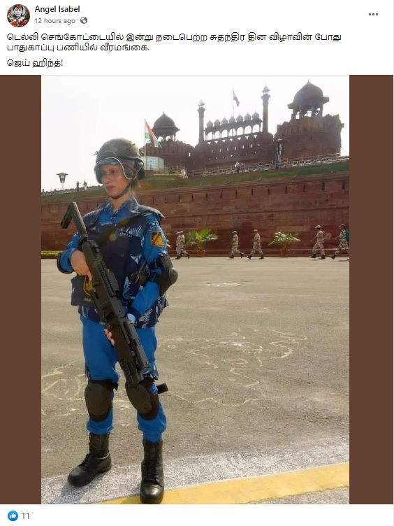 சுதந்திர தின பாதுகாப்பு பணியில் ஈடுபட்ட வீரமங்கை என்று புகைப்படம் ஒன்று சமூக வலைத்தளங்களில் பரவி வருகிறது.