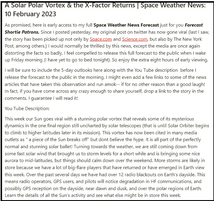 அவர் தன்னுடைய ட்விட்டர் பக்கத்தில், “Talk about Polar Vortex! Material from a northern prominence just broke away from the main filament & is now circulating in a massive polar vortex around the north pole of our Star. Implications for understanding the Sun’s atmospheric dynamics above 55° here cannot be overstated!” என்று பதிவிட்டிருந்தார்.