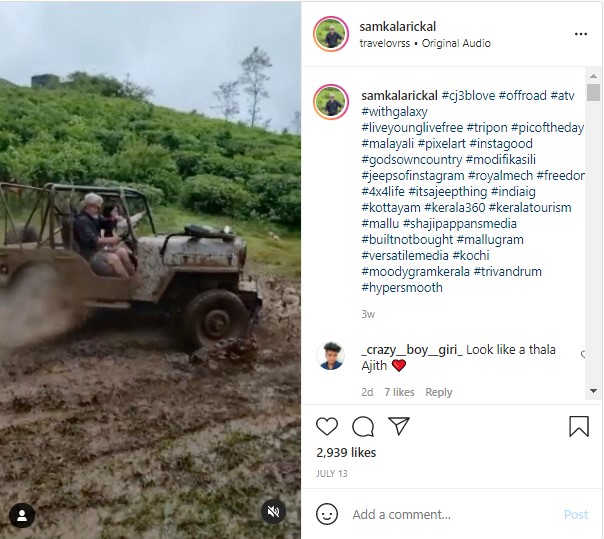 உண்மையில் அவ்வீடியோவில் இருப்பவர் கேரளாவைச் சார்ந்த சாம் குரியன் களரிக்கல் என்பவர் ஆவார். இவர் கடந்த மாதம் 13 ஆம் தேதி (ஜூலை 13) அவரது இன்ஸ்டாகிராம் பக்கத்தில் ஜீப் ஓட்டும் வீடியோ ஒன்றை பதிவு செய்துள்ளார். அந்த வீடியோவே நடிகர் அஜித் ஜீப் ஓட்டியதாக சமூக வலைத்தளங்களில் தற்போது வைரலாகி வருகின்றது.