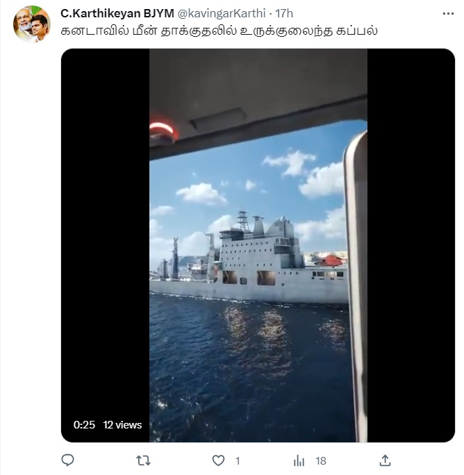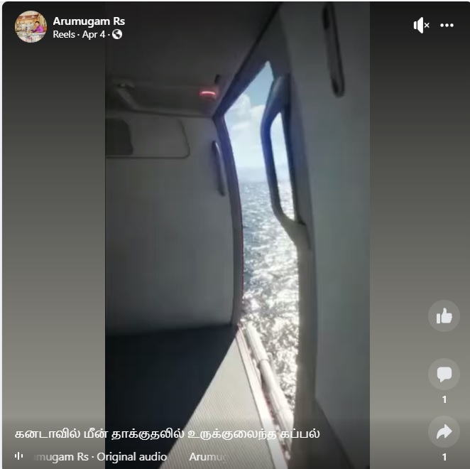 கனடாவில் சுறா மீன் தாக்கியதில் உருக்குலைந்த கப்பல் என்று பரவும் வீடியோ தகவல் பற்றிய உண்மையறிய அதுகுறித்த ஆய்வில் ஈடுபட்டோம்.