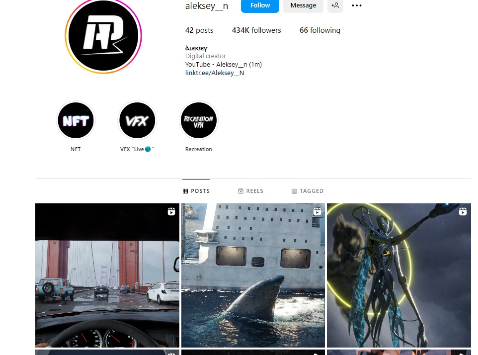 வைரல் வீடியோவை கீ-ப்ரேம்களாகப் பிரித்து தேடியபோது அது Aleksey_n என்கிற டிஜிட்டல் க்ரியேட்டருடைய அதிகாரப்பூர்வ சமூக வலைத்தளப்பக்கத்தில் இந்த வீடியோ பதிவிடப்பட்டிருப்பதை நமக்குக் காட்டியது.