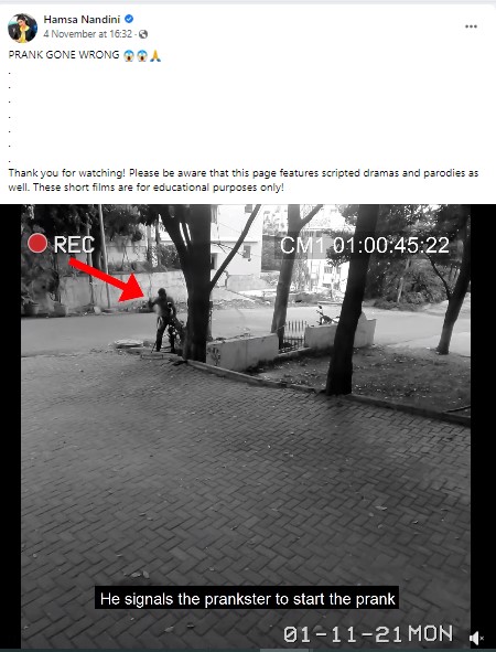 இந்த வீடியோவானது விழிப்புணர்வுக்காக உருவாக்கப்பட்டது எனவும் இவ்வீடியோவில் இருக்கும் நிகழ்வுகள் புனையப்பட்டது எனவும் இவ்வீடியோவில் குறிப்பிடப்பட்டிருந்ததை நம்மால் காண முடிந்தது.