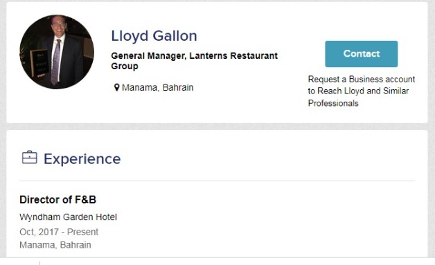 மரியம் குறிப்பிட்டிருந்த நபர் குறித்து நாம் மேலும் விரிவாக தேடியபோது, Gulf Talents என்கிற வலைத்தளத்தில் குறிப்பிட்ட உணவகத்தின் மேலாளர் Lloyd Gallon என்பவரின் பக்கம் நமக்குக் கிடைத்தது.