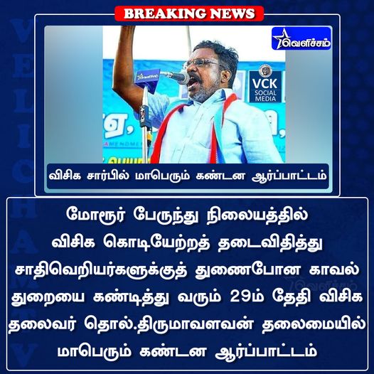 சேலம் வன்முறை சம்பவத்திற்கு பிறகு விசிக தலைவர் திருமாவளவன் அவர்கள் செப்டம்பர் 29 ஆம் தேதி அனைத்து மாவட்டங்களிலும் கண்டன ஆர்ப்பாட்டம் நடத்தப்படும் என்றும் அறிவித்திருந்தார்.