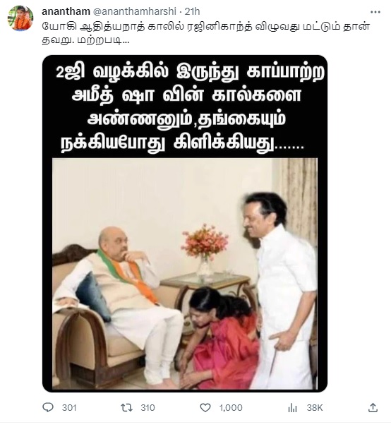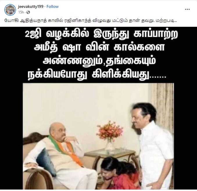 Claim: அமித்ஷா கால்களில் விழுந்த கனிமொழி மற்றும் மு.க.ஸ்டாலின்