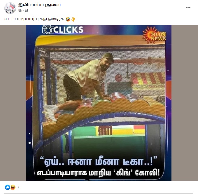 எடப்பாடியாராக மாறிய கிங் கோலி என்கிற வாசகங்களுடன் நியூஸ்கார்ட் ஒன்று சமூக வலைத்தளங்களில் பரவி வருகிறது.