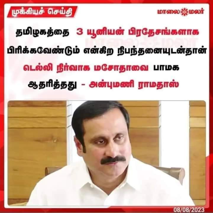 “தமிழகத்தை 3 யூனியன் பிரதேசங்களாக பிரிக்கவேண்டும் என்கிற நிபந்தனையுடன்தான் டெல்லி நிர்வாக மசோதாவை பாமக ஆதரித்தது – அன்புமணி ராமதாஸ்” என்று இந்த நியூஸ்கார்ட் பரவுகிறது.