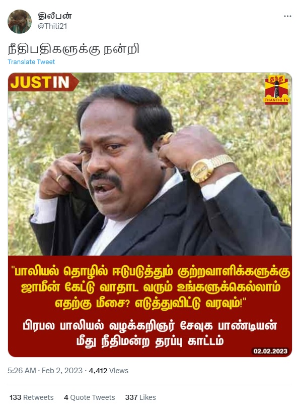 Twitter Post From, Pasumpon Pandian, Dated February 02, 2023