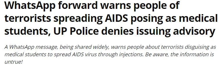 கடந்த 2017 ஆம் ஆண்டே, உத்திர பிரதேச காவல்துறை இந்த செய்தியை வெளியிட்டதாக சமூக வலைத்தளங்களில் வைரலாகிய நிலையில் உத்திர பிரதேச காவல்துறை குறிப்பிட்ட செய்தி போலியானது என்று தெரிவித்துள்ளது. இந்தியா டுடேவிலும் இதுகுறித்த கட்டுரை வெளியாகியுள்ளது குறிப்பிடத்தக்கது.