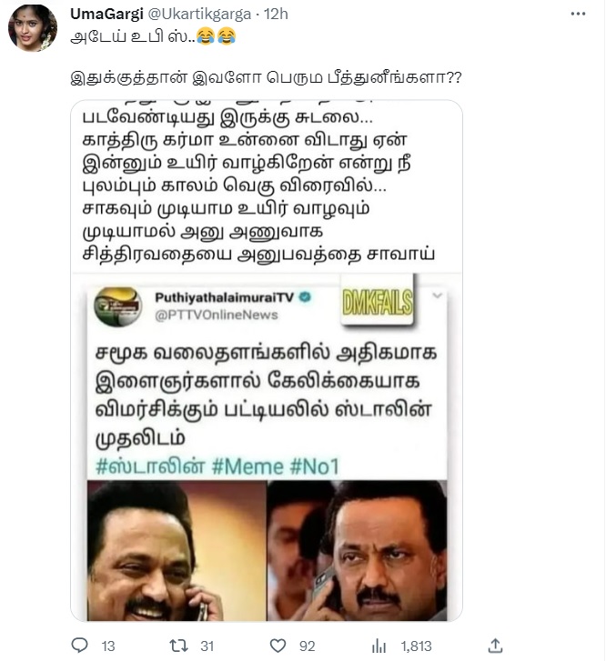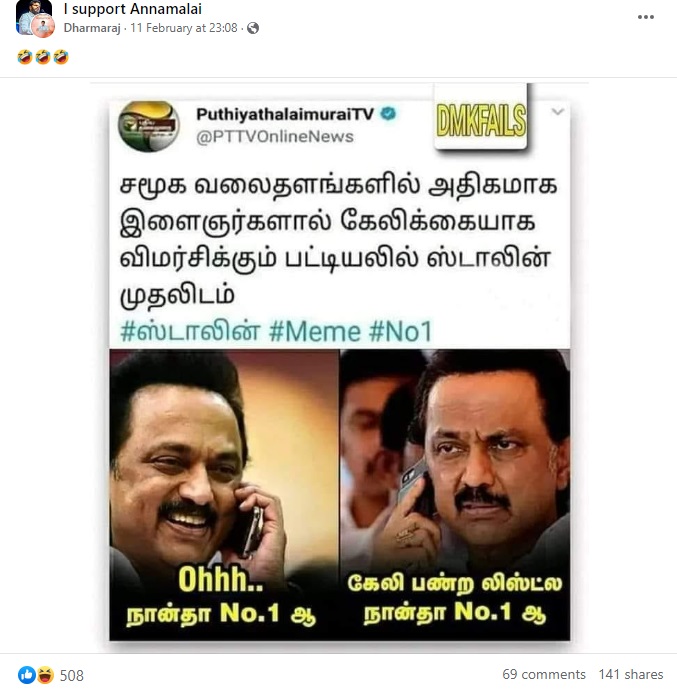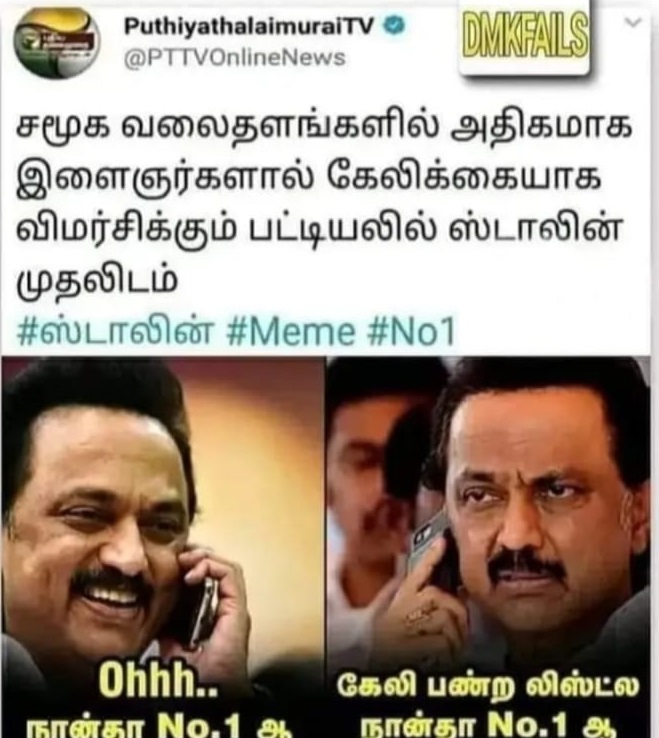 “சமூக வலைத்தளங்களில் அதிகமாக இளைஞர்களால் கேலிக்கையாக விமர்சிக்கும் பட்டியலில் ஸ்டாலின் முதலிடம்” என்பதாக இந்த புகைப்படம் வைரலாகி வருகிறது.