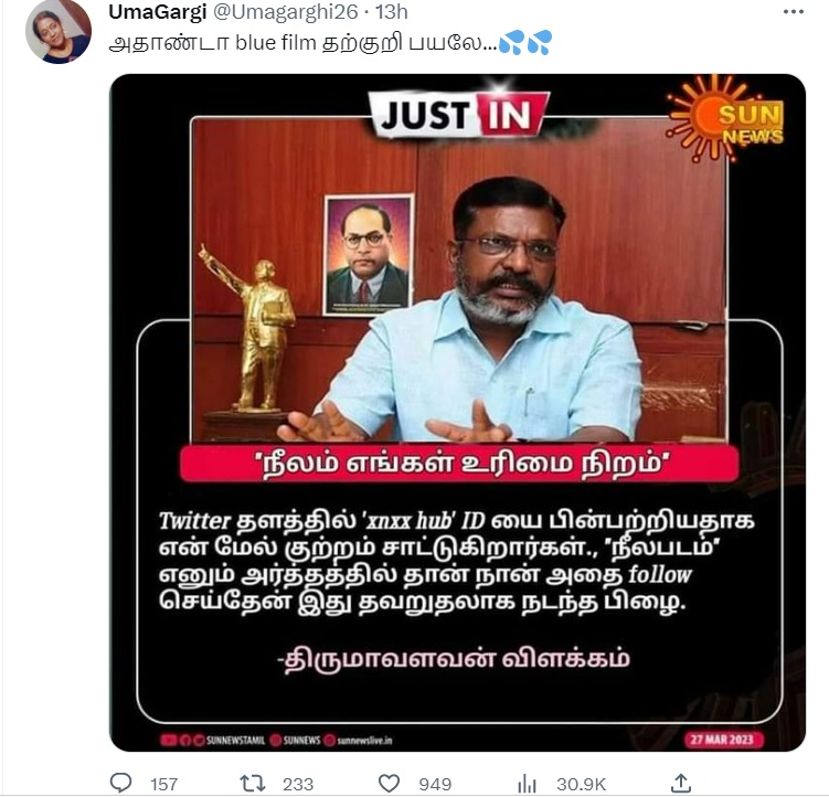 Claim: “நீலம் எங்கள் உரிமை நிறம்” – தொல்.திருமாவளவன்