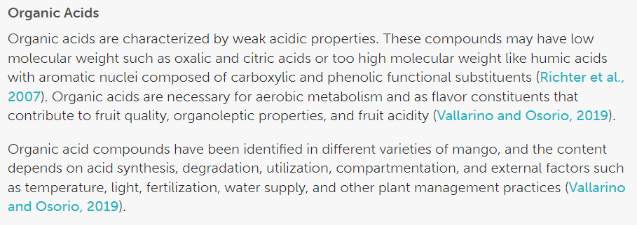 தொடர்ந்து இதுகுறித்து தேடியபோது, கடந்த 2019 ஆம் ஆண்டு, Frontiers வெளியிட்டிருந்த கட்டுரை ஒன்று நமக்குக் கிடைத்தது. அதில், “Mango contains organic acids like malic and citric acid, which are the main reason for the sourness of mango fruit.” என்று மாம்பழத்தில் உள்ள ரசாயன பண்புகள் பற்றி குறிப்பிடப்பட்டுள்ளது.