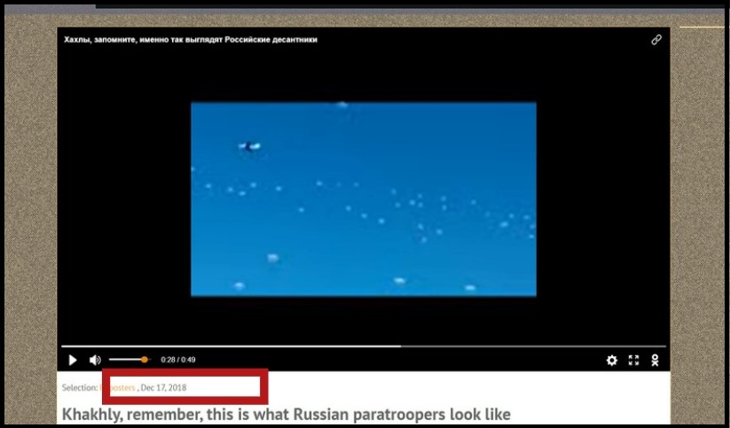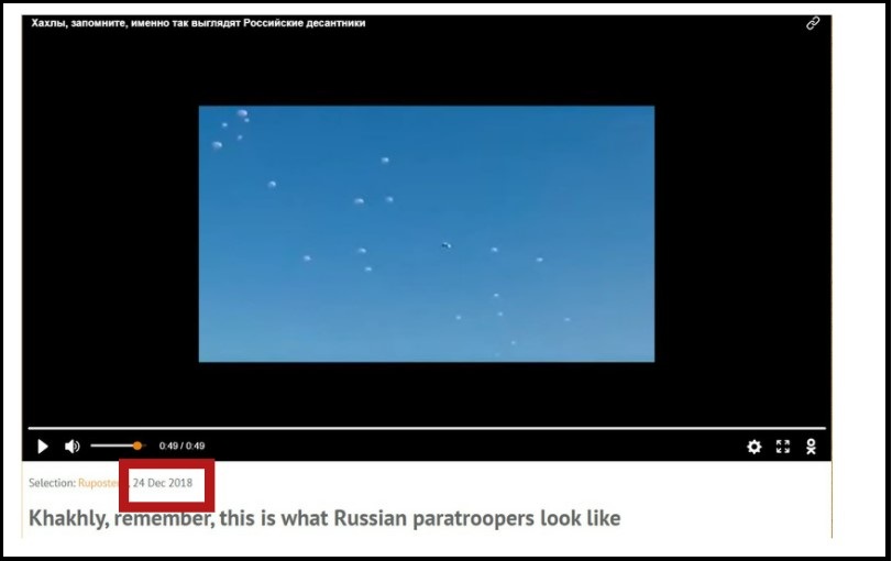 அந்த இணைப்பில், கடந்த டிசம்பர் 17, 2018ல் குறிப்பிட்ட இந்த வீடியோ ”this is what Russian paratroopers look like” என்பதாக ரஷ்ய மொழியில் அர்த்தம் தொனிக்கும் வகையில் குறியிடப்பட்டிருந்தது. எனினும், அதன் முழு அர்த்தம் இதுதானா என்பது ரஷ்ய மொழியில் தெரிந்து கொள்ள முடியவில்லை.