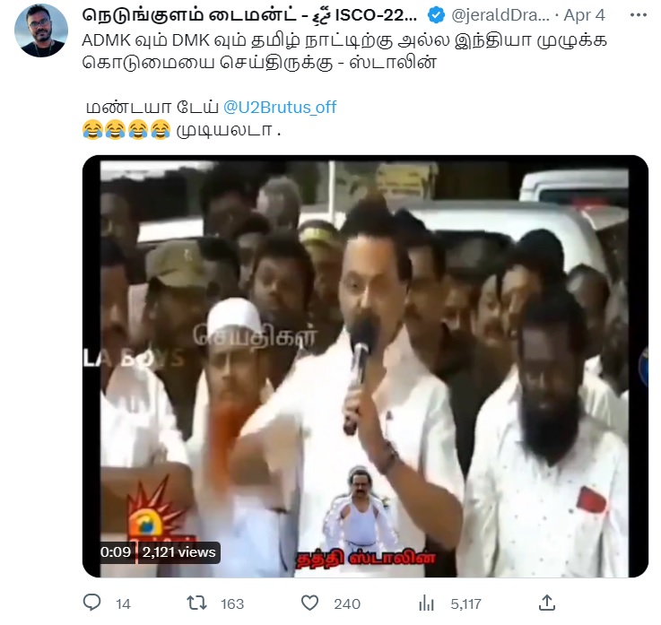 ”ADMK வும் DMK வும் தமிழ் நாட்டிற்கு அல்ல இந்தியா முழுக்க கொடுமையை செய்திருக்கு – ஸ்டாலின் “ என்பதாக இந்த வீடியோ வைரலாகி வருகிறது.