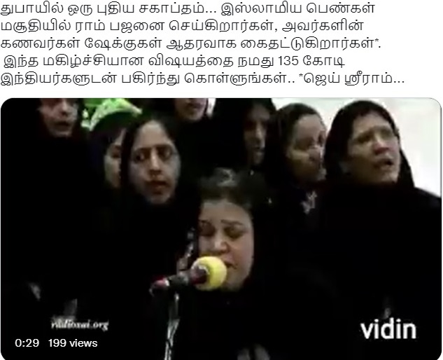 துபாய் மசூதியில் இஸ்லாமிய பெண்கள் ராம பஜனை என்பதாக வீடியோ ஒன்று சமூக வலைத்தளங்களில் பரவுகிறது.