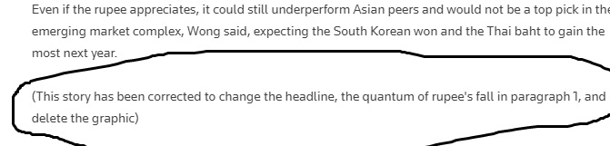 இதன்மூலம், முதலில் வெளியான கட்டுரையில் மாற்றங்கள் செய்யப்பட்டு, 2022ஆம் ஆண்டின் மிக மோசமான நாணயம், இந்திய ரூபாய் என்பது மாற்றப்பட்டு, 2022ஆம் ஆண்டில் மிக மோசமாக செயல்பட்ட ஆசிய நாணயங்களில் இந்திய ரூபாயும் ஒன்று என்பதாக மாற்றப்பட்டுள்ளது குறிப்பிடத்தக்கது.
