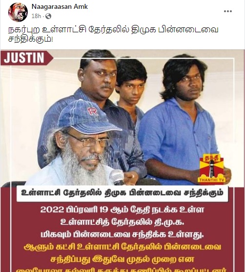 இந்நிலையில், நகர்ப்புற உள்ளாட்சி தேர்தல் தமிழ்நாட்டில் நாளை நடைபெற உள்ள நிலையில், “உள்ளாட்சி தேர்தலில் திமுக பின்னடைவை சந்திக்கும். 2022 பிப்ரவரி 19 ஆம் தேதி நடக்க உள்ள உள்ளாட்சி தேர்தலில் திமுக மிகவும் பின்னடைவை சந்திக்க உள்ளது. ஆளும் கட்சி உள்ளாட்சி தேர்தலில் பின்னடைவை சந்திப்பது இதுவே முதல்முறை என லயோலா கல்லூரி கருத்து கணிப்பில் கூறப்பட்டது” என்பதாக நியூஸ் கார்டு ஒன்று சமூக வலைத்தளங்களில் வைரலாகிறது.