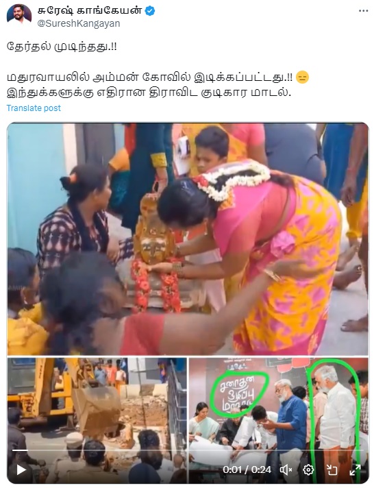 Claim: தேர்தல் முடிந்தது.மதுரவாயலில் அம்மன் கோவில் இடிக்கப்பட்டது