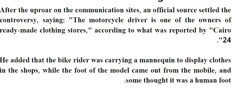 குறிப்பிட்ட கட்டுரையில் அப்புகைப்படம் குறித்து விளக்கத்தில், கடைகளில் உபயோகிக்கப்படும் பொம்மையை கைரோவில் எடுத்துச் சென்ற ஒருவரின் புகைப்படம் இது என்றும், யாரோ இதனை புகைப்படம் எடுத்து சமூக வலைத்தளத்தில் பரப்பியுள்ளனர் என்றும் தெரிவித்துள்ளது.