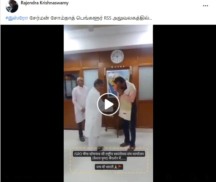 ”இஸ்ரோ சேர்மன் சோம்நாத் RSS அலுவலகத்தில்” என்று இந்த வீடியோ வைரலாகி வருகிறது.