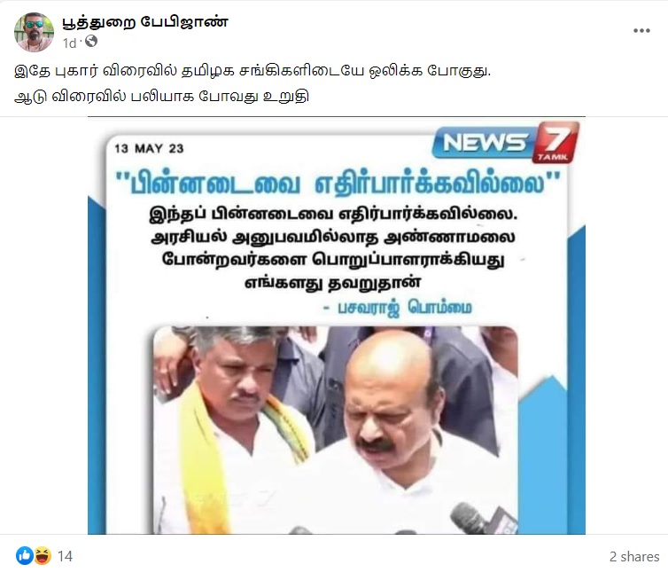 Facebook Post From, News 7 Tamil, Dated May 14, 2023