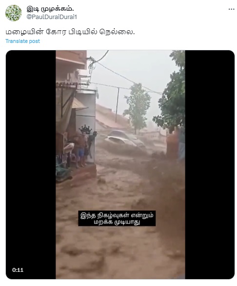 மழையின் கோரப்பிடியில் நெல்லை என்று பரவும் வீடியோ மொராக்கோ நாட்டில் எடுக்கப்பட்டது என்பது நமக்கு கிடைத்த ஆதாரங்களின் வாயிலாக தெளிவாகியுள்ளது.