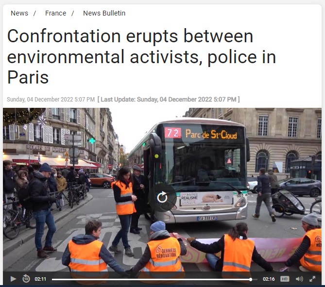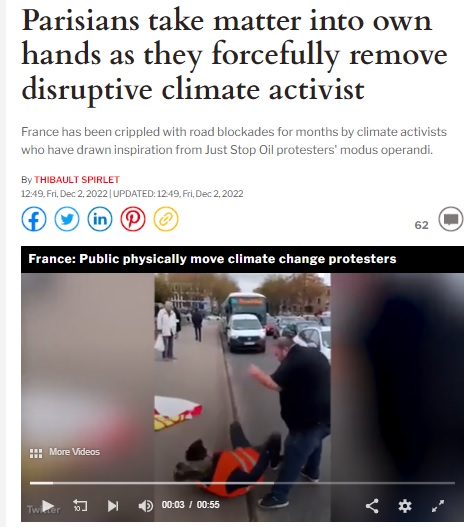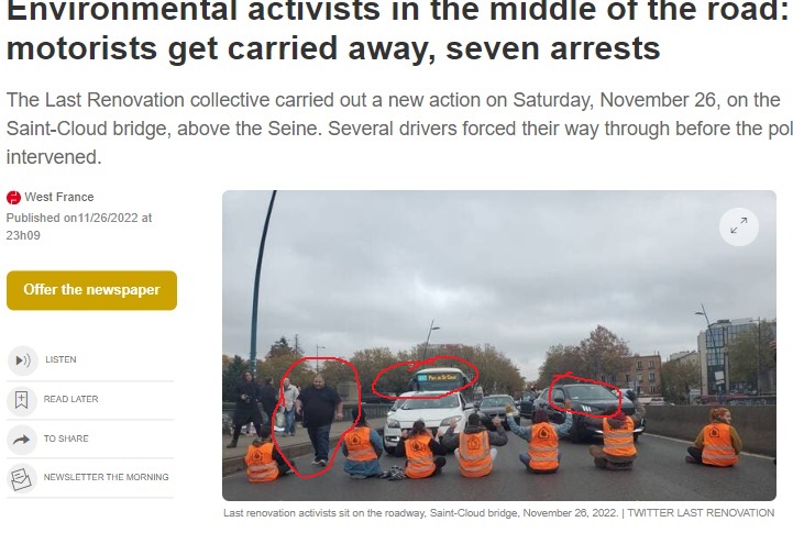 அதில் இடம்பெற்றிருந்த செய்தி என்னவெனில், காலநிலை மாற்றப் போராட்டக்காரர்களை சாலையில் சென்ற வாகனவோட்டிகளே சாலையோரம் இழுத்து அகற்றிச் சென்றனர் என்று வெளியாகியிருந்தது.