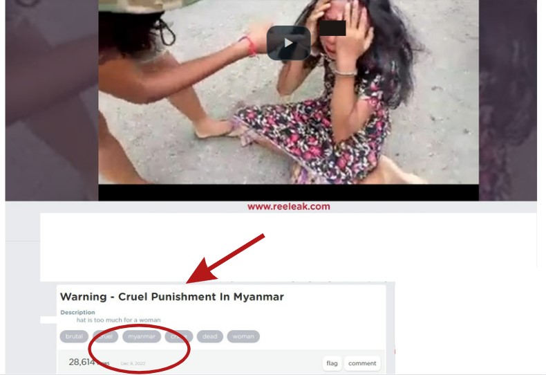 குறிப்பிட்ட வீடியோவை கீ-ப்ரேம்களாகப் பிரித்து ரிவர்ஸ் சர்ச் முறைக்கு உள்ளாக்கினோம். அதன் முடிவில், கடந்த டிசம்பர் 09, 2022ஆம் ஆண்டு Reeleak என்கிற இணையதளத்தில் இந்த வீடியோ இடம்பெற்றிருப்பதைக் காண முடிந்தது. ”Cruel Punishment In Myanmar” என்கிற தலைப்புடன் இந்த வீடியோ இடம்பெற்றிருந்தது.