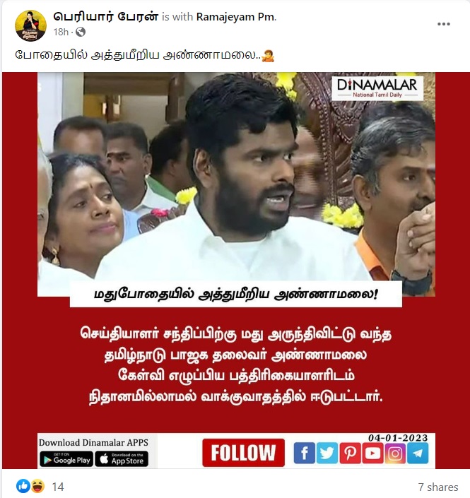 Facebook Post, From Dinamalar, Dated January 05, 2023