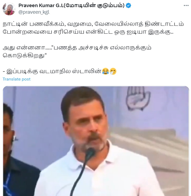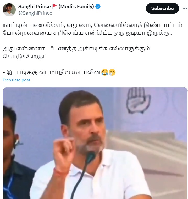 Claim: பணத்த அச்சடிச்சு எல்லாருக்கும் கொடுக்கிறது – ராகுல் காந்தி