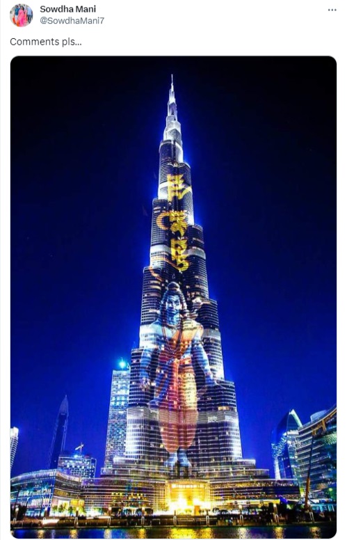 Claim: துபாய் புர்ஜ் கலிஃபா கட்டிடத்தில் மின்னொளியில் ஒளிர்ந்த ராமர்