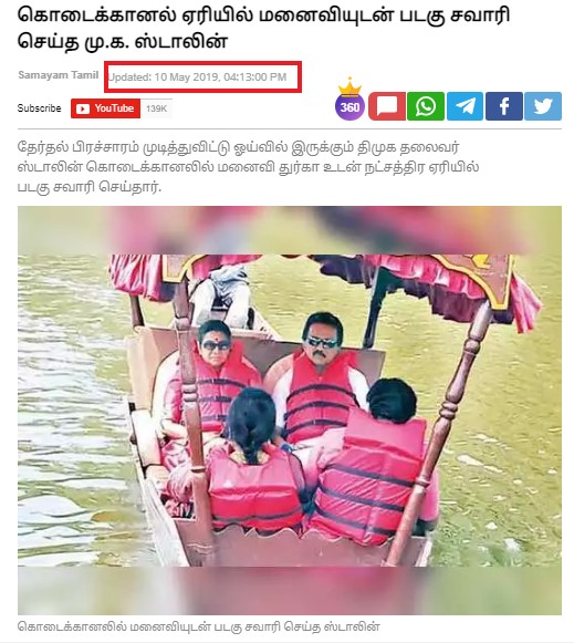 மேற்கிடைத்த ஆதாரங்களின் அடிப்படையில் பார்க்கும்போது, ஸ்டாலின் அவர்கள் படகு சவாரி செய்யும் புகைப்படம் பழையப் புகைப்படம் என்பது தெளிவாகின்றது.