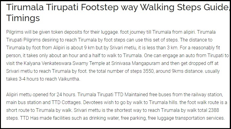 முதலாவதாக, ஸ்ரீவாரி மெட்டில் இருந்து ரிலையன்ஸ் அமைத்துள்ள புதிய வழி என்று பரவும் தகவல் தவறானது. ஸ்ரீவாரி மெட்டில் இருந்து அமைந்துள்ள படிவழிப்பாதை 2388 படிகளுடன் திருமலையை அடைய பலவருடங்களாக மக்களால் பயன்படுத்தப்பட்டு வருகின்ற சிறிய தூரம் கொண்ட வழியாகும்.
