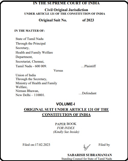 அந்த மனுவை திரும்பப்பெற்ற தமிழ்நாடு அரசு, இந்திய அரசியலமைப்புச் சட்டப்பிரிவு 131இன் அடிப்படையில் மத்திய மற்றும் மாநில அரசுகளுக்கு அல்லது இரண்டு மாநிலங்களுக்கு இடையேயான ஒரிஜினல் சூட் வழக்கு மனுவாக உச்ச நீதிமன்றத்தில் தாக்கல் செய்துள்ளது.