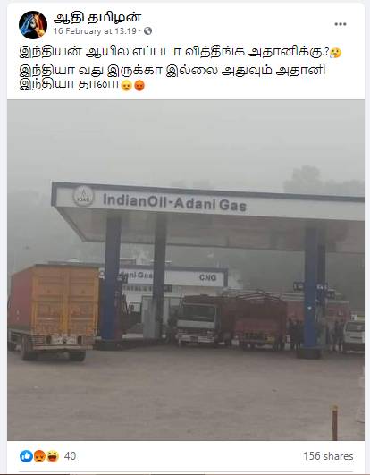 இந்தியன் ஆயில் நிறுவனம் அதானி குழுமத்துக்கு விற்கப்பட்டதாக கூறி புகைப்படம் ஒன்று சமூக வலைத்தளங்களில் வைரலாகியது.