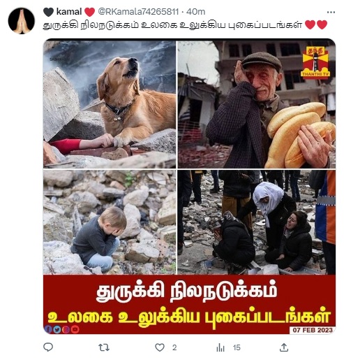 துருக்கி நிலநடுக்கம் – உலகை உலுக்கிய புகைப்படங்கள் என்று தந்தி டிவி உட்பட பலரும் பகிரும் புகைப்படங்கள் குறித்த உண்மையறிய அதுகுறித்த ஆய்வில் ஈடுபட்டோம்.