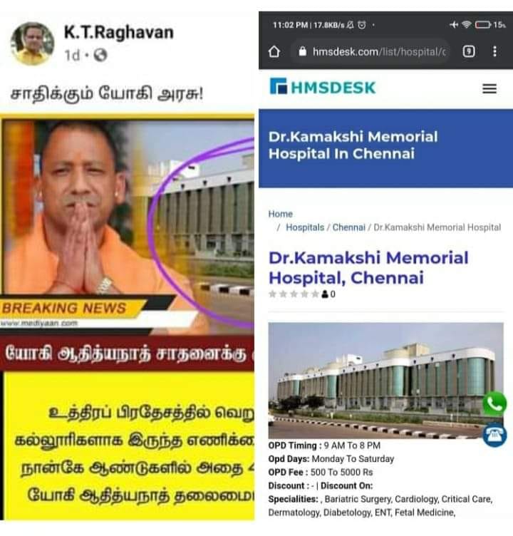 யோகி அரசின் சாதனை என்று மருத்துவமனை ஒன்றின் வெளிப்புறத்தோற்றத்துடன் உபி அரசின் சாதனையாகப் புகைப்படம் ஒன்று சமூக வலைத்தளங்களில் வைரலாகிறது.