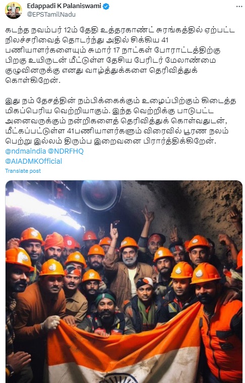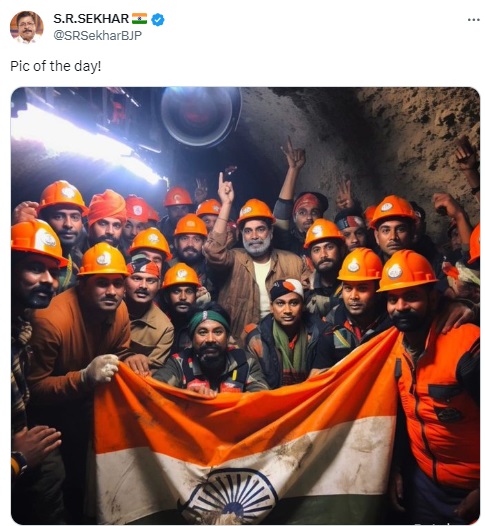 ஆனால் சுரங்க விபத்தில் சிக்கித் தவித்த தொழிலாளர்களை உயிருடன் மீட்டது தேசிய மாடல்! நரேந்திர மோடி அரசிற்கு பாராட்டுக்கள்.” என்று இந்த புகைப்படத்தை அர்ஜூன் சம்பத் உட்பட பலரும் பகிர்ந்து வருகின்றனர்.