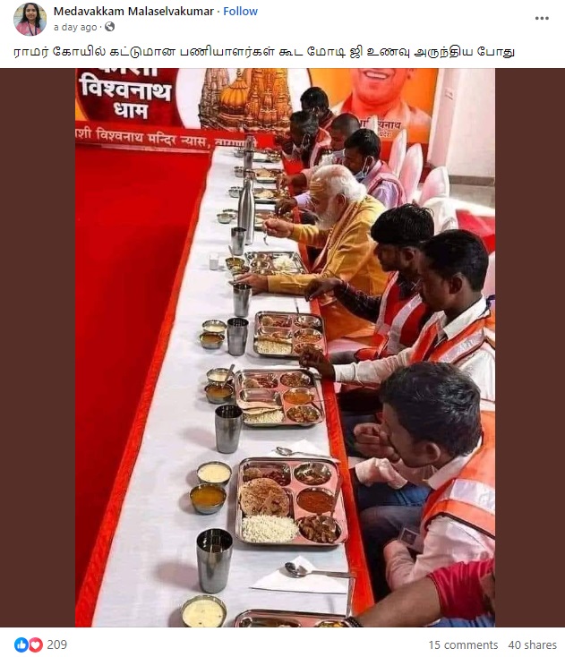 “ராமர் கோயில் கட்டுமான பணியாளர்கள் கூட மோடி ஜி உணவு அருந்திய போது” என்று இந்த புகைப்படம் பரவி வருகிறது.