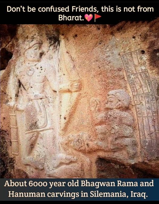 “ஈராக்கில் 6000 ஆண்டுகளுக்கு முன்பு உள்ள ராமர் மற்றும் அனுமான் சிற்பம்” என்பதாக இந்த புகைப்படம் பரவி வருகிறது.