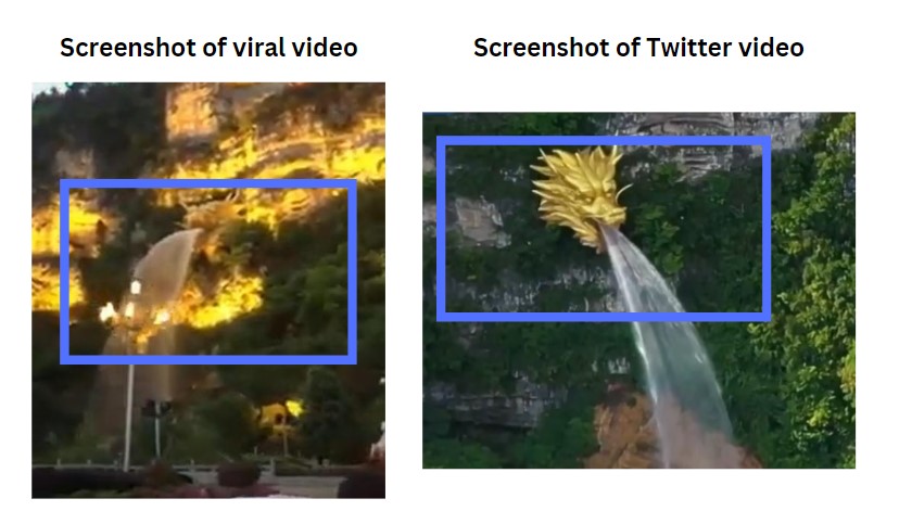 இதன்முடிவில், வைரல் வீடியோவில் உள்ள நீர்வீழ்ச்சியும், மேற்குறிப்பிட்ட ட்வீட் மற்றும் வீடியோவில் உள்ள நீர்வீழ்ச்சியும் ஒன்றே என்பது உறுதியானது.