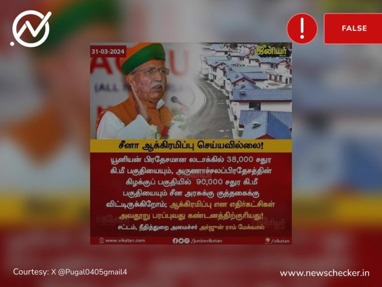 அருணாச்சல் பகுதிகளை சீனாவிற்கு குத்தகைக்கு விட்டிருக்கிறோம் என்றாரா அமைச்சர் அர்ஜூன் ராம் மேக்வால்?