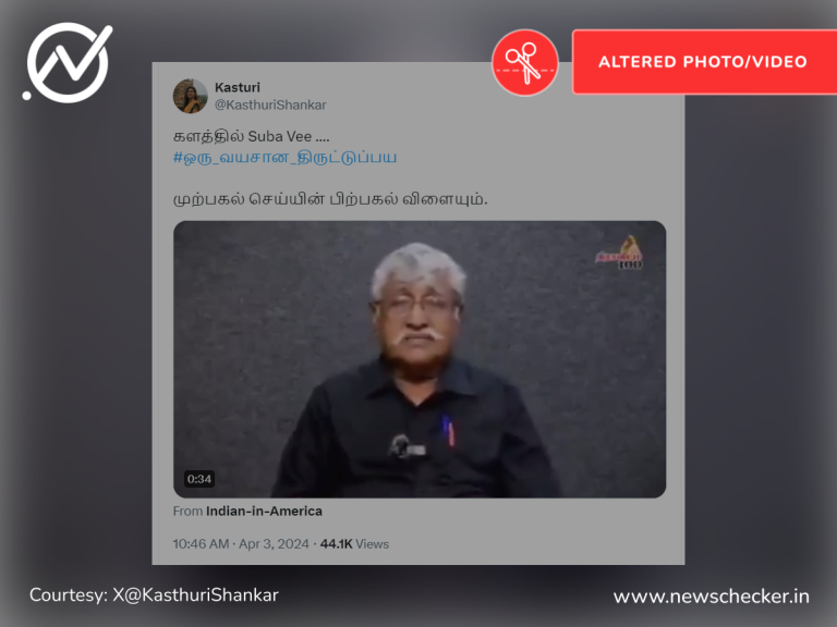 கருணாநிதியை திருடன் என்று சுப.வீரபாண்டியன் கூறியதாக பரப்பப்படும் வீடியோ எடிட் செய்யப்பட்டு மாற்றப்பட்டதாகும்.