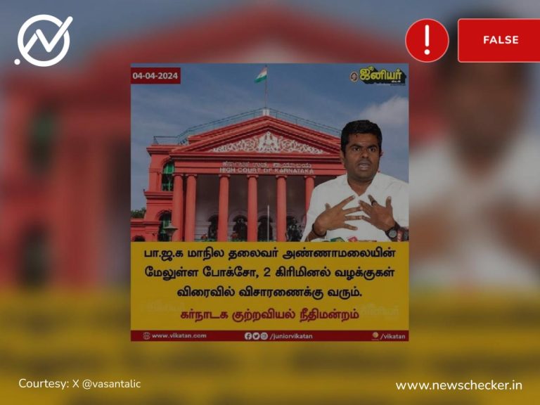 அண்ணாமலை மீது போக்சோ வழக்கு இருப்பதாகப் பரவும் நியூஸ்கார்ட் போலியானதாகும்.