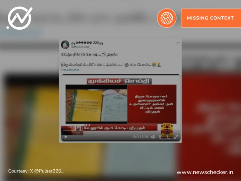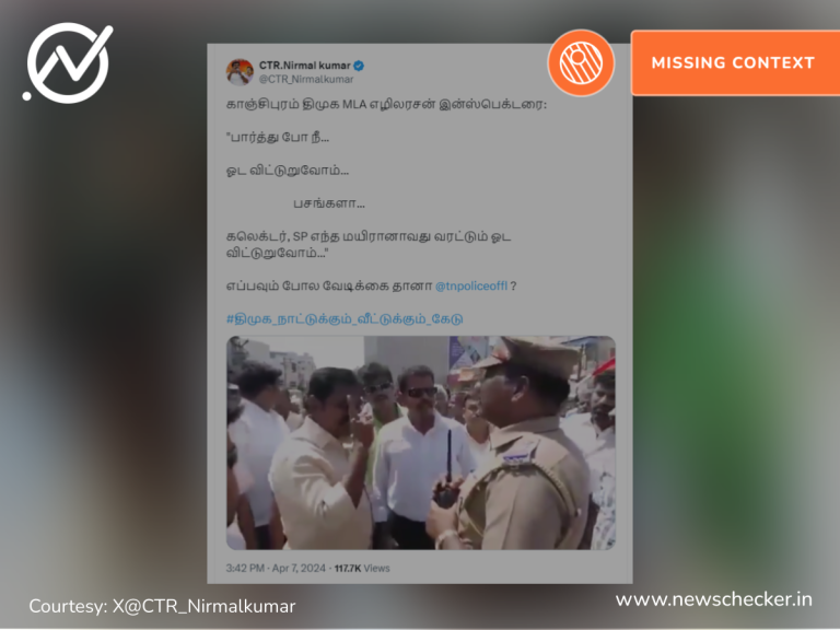 (உங்களுக்கு ஏதேனும் ஒரு தகவல் குறித்து சந்தேகம் ஏற்பட்டாலோ அல்லது ஏதாவது ஒரு தகவலின் உண்மைத்தன்மைக் குறித்து அறிய விரும்பினாலோ 9999499044 என்கிற வாட்ஸ்ஆப் எண்ணிற்கோ, அல்லது checkthis@newschecker.in என்ற மின்னஞ்சல் முகவரிக்கோ உங்கள் கேள்விகளை அனுப்பலாம்.